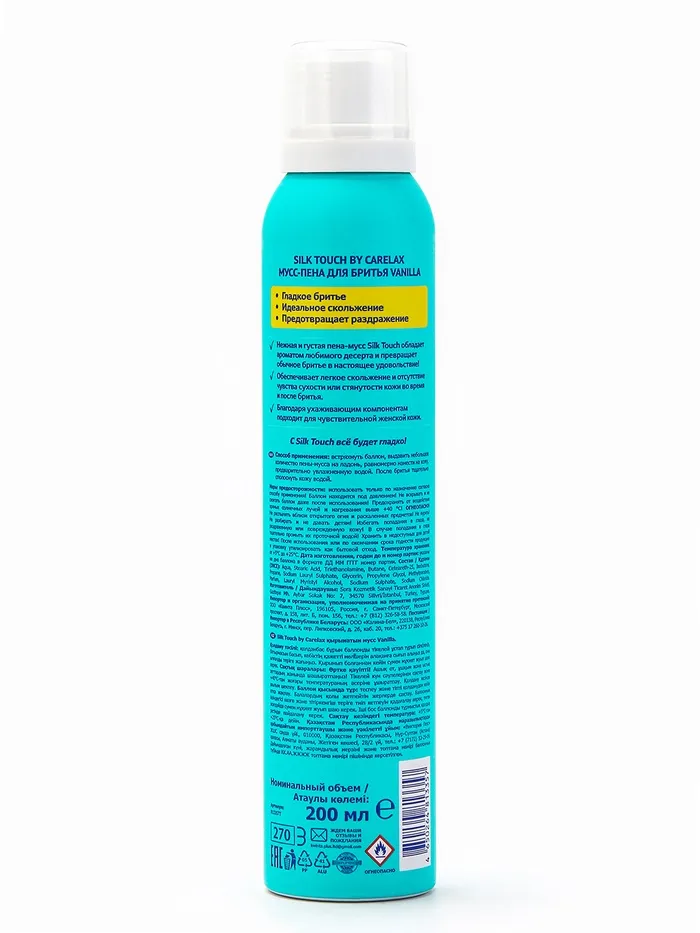 Мусс для бритья Carelax Silk Touch женский, ваниль — это нежное средство, созданное для комфортного и гладкого бритья. Лёгкая воздушная текстура мягко обволакивает кожу, смягчая волосы и минимизируя риск раздражений и порезов.