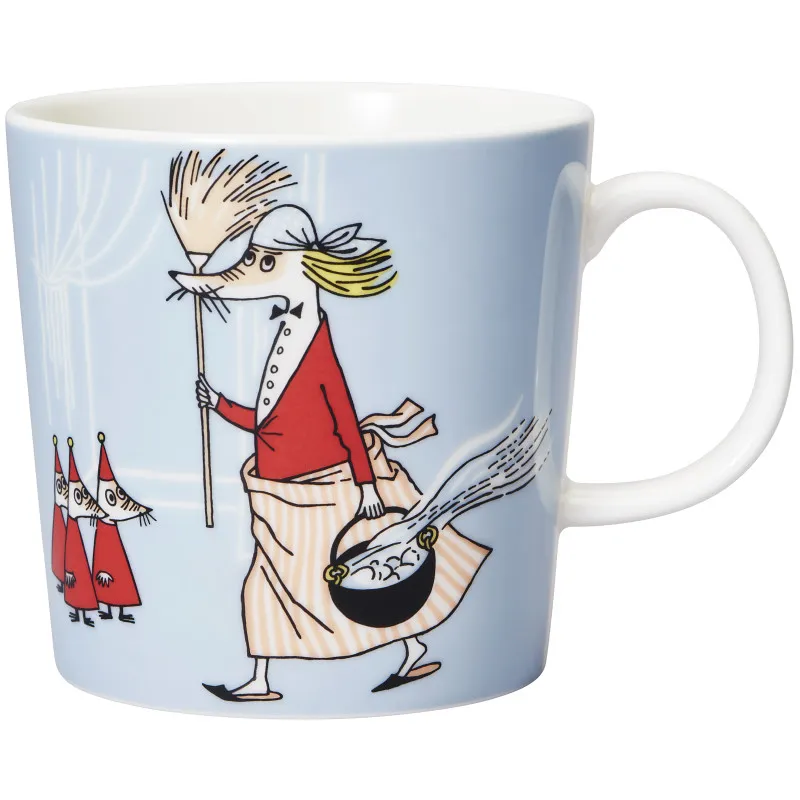 Кружка Муми-тролль с изображением энергичной уборщицы Вильонкки в своей стихии. У Вильонкки трое детей, и она обожает порядок и чистоту. Она неутомимо убирает свой дом и радуется каждой возможности организовать генеральную уборку. Психиатр, прибывший в Муми-дол, излечивает миссис Вильонкку от её страсти к уборке, но Муми-мама решает вернуть ей её энтузиазм. Муми-посуду можно считать вечной классикой — она подходит как для повседневного использования, так и для праздников. Кружка из жаропрочного фарфора легко выдерживает ежедневное использование. Добавьте яркие акценты на ваш стол, комбинируя различные предметы из коллекции Муми. Создайте атмосферу с помощью историй разных персонажей.