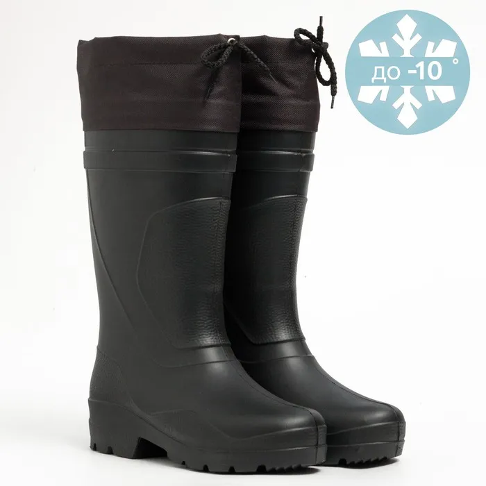 Сапоги изготовлены из современного материала ЭВА, что делает их легкими, обеспечивает высокую теплоизоляцию и водонепроницаемость. Эти качества делают сапоги из ЭВА универсальными, долговечными и комфортными. Они способны выдержать холода до -10°С. Возможность установки съемного утеплителя позволяет регулировать температуру внутри сапога в зависимости от погодных условий и задач.