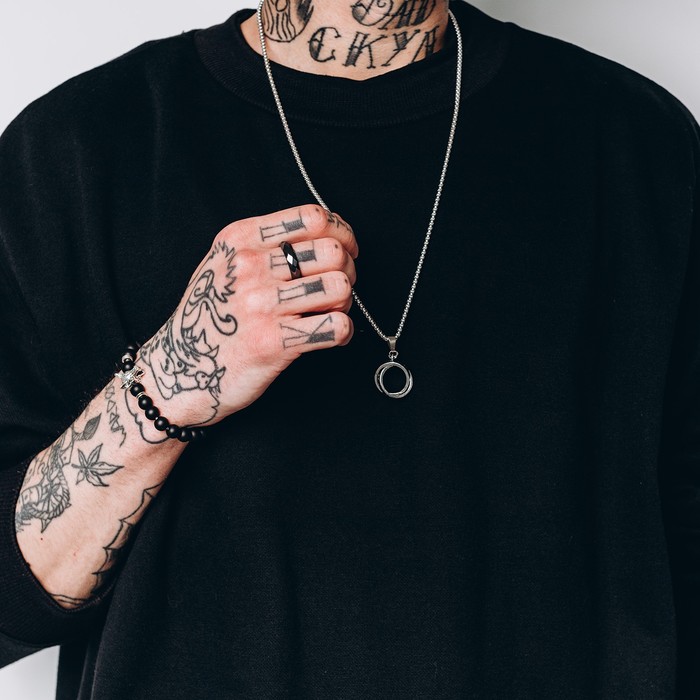 Мужской кулон, «Викинг» переплетение колец, цвет чернёное серебро, 60 см — Характеристики