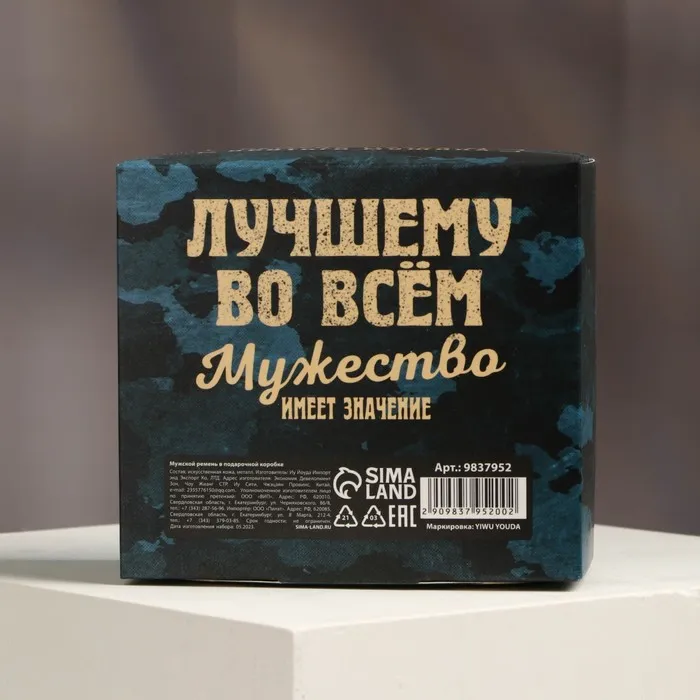 Мужской ремень «23 февраля», кожзам, чёрный — Характеристики