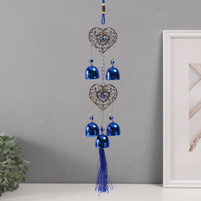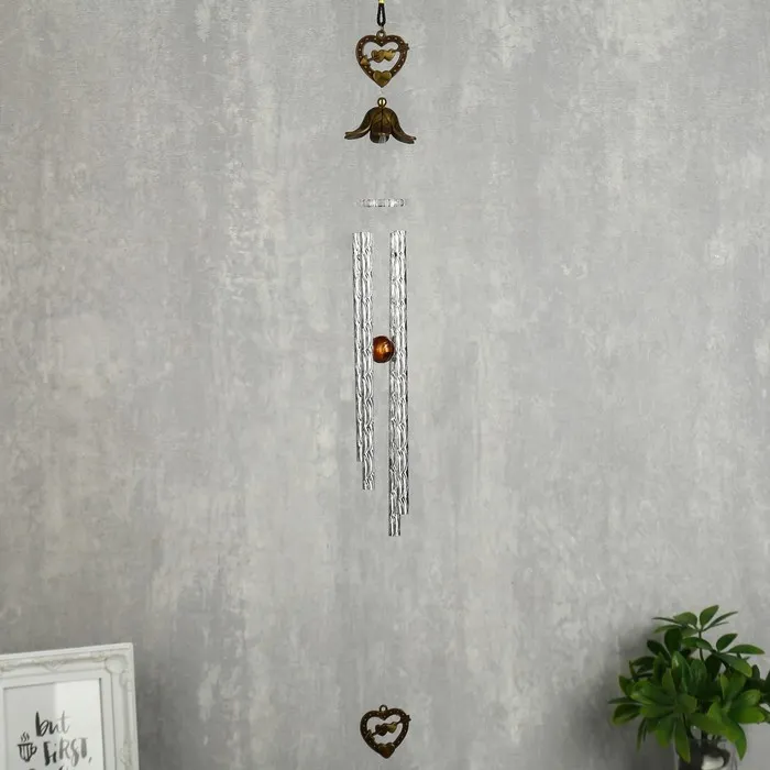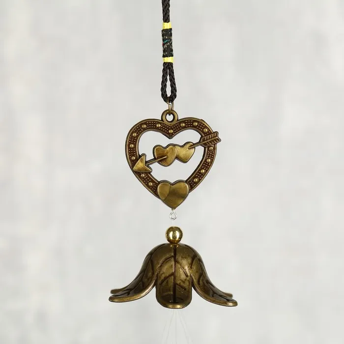 Музыка ветра металл от сглаза "Ажурное сердце" 5 колокольчиков 5,5х45 см