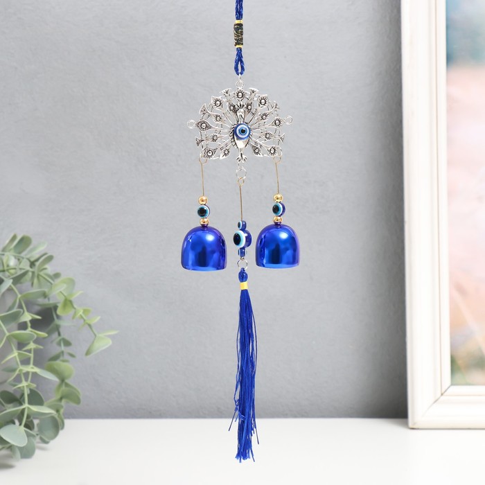 Музыка ветра от сглаза «Павлин хвост-веер», с кисточкой, 2 колокольчика, 28 см