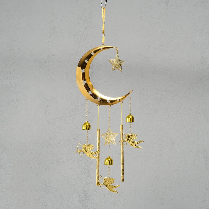 Музыка ветра металл "Полумесяц и ангелочки" 3 колокольчика 2,5х20х67 см