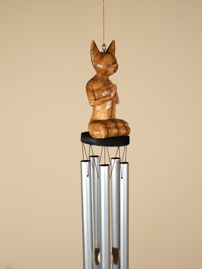 Музыка ветра "Кошка" дерево, алюминий 7х7х70 см — Характеристики