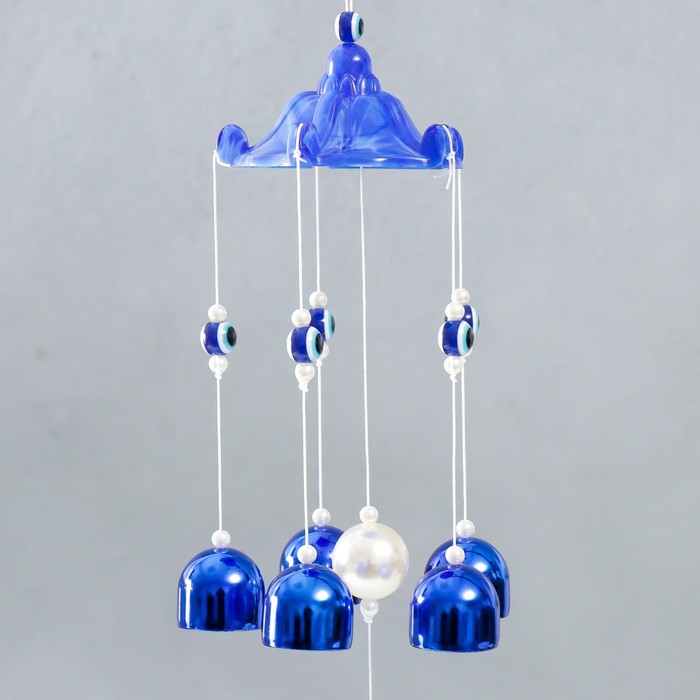 Металлические элементы синего оттенка красиво переливаются на солнце, а нежные звуки колокольчиков помогают настроиться на позитивный лад. Композиция длиной 43 см станет изысканным украшением террасы, балкона или оконного проёма, привнося в интерьер нотку романтики.