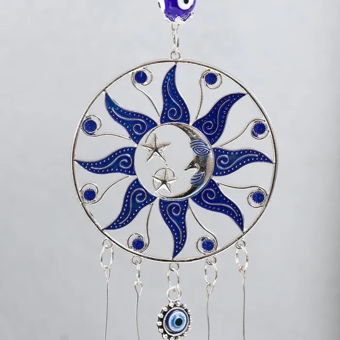 Музыка ветра металл "Месяц в солнце" от сглаза 5 колокольчиков 22 см