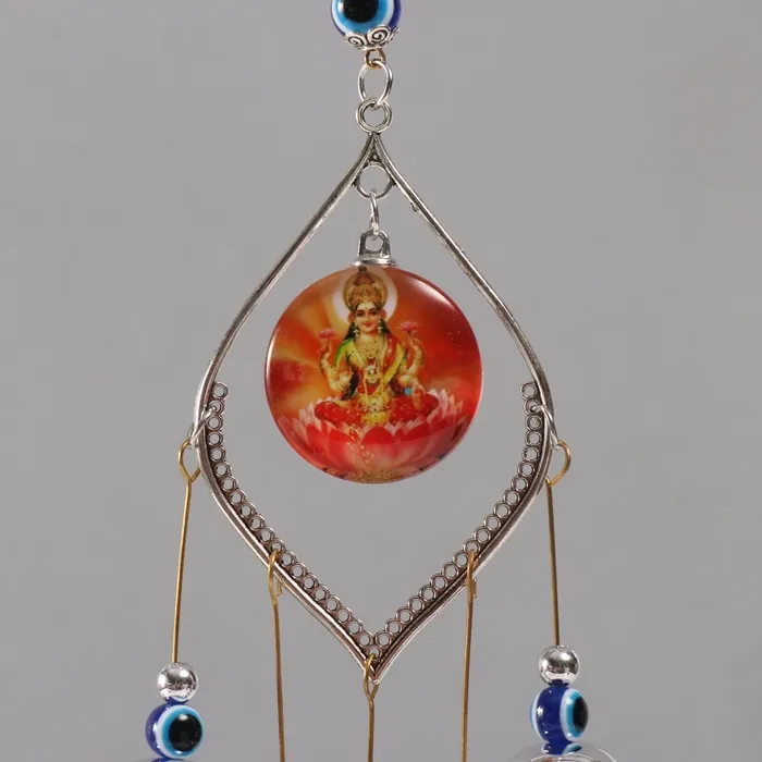Музыка ветра металл от сглаза "Богиня Лакшми" 5 колокольчиков 36 см