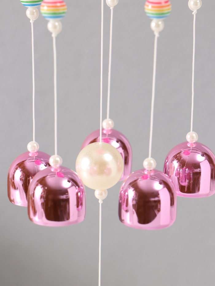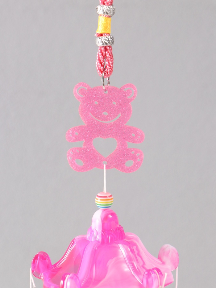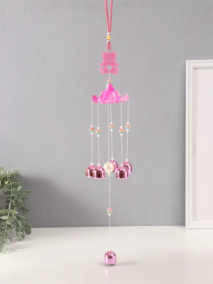Музыка ветра металл от сглаза "Мишка с 6 колокольчиками" розовый h=53см — Характеристики