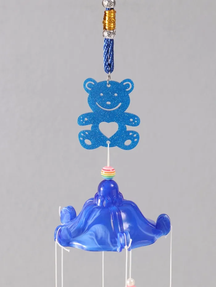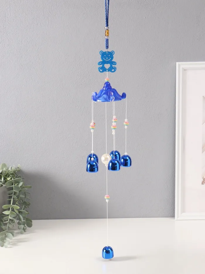 Музыка ветра металл от сглаза "Мишка с 6 колокольчиками" синий h=53см — Характеристики