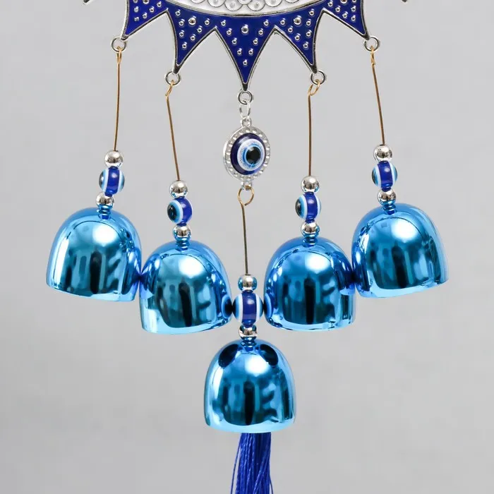 Музыка ветра металл, пластик от сглаза "Глаз с 5 голубыми колокольчиками" 42х11х2,8 см — Характеристики