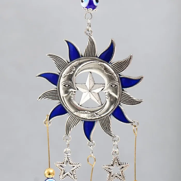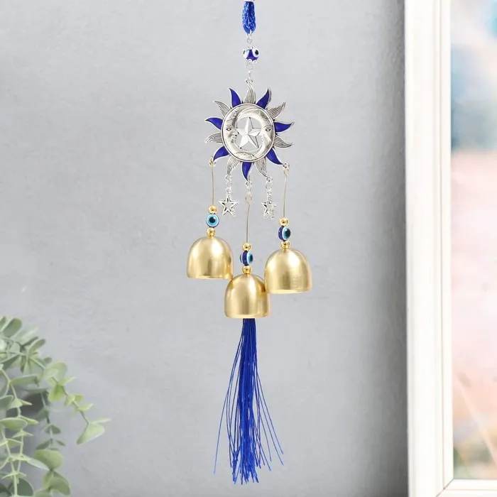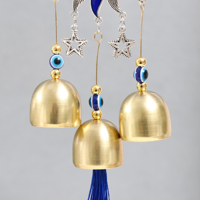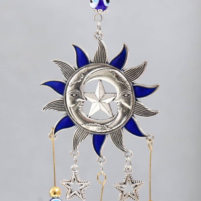 Музыка ветра металл "Звезда, два месяца и солнце" синий, от сглаза 3 колокольчика 27 см — Характеристики
