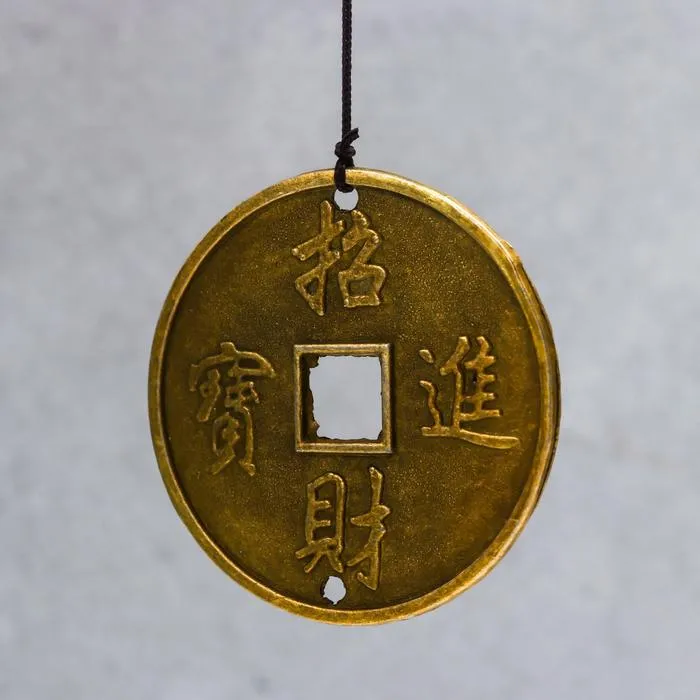 Музыка ветра "Дракон на монете" 3 колокольчика + 1 подвеска 46 см
