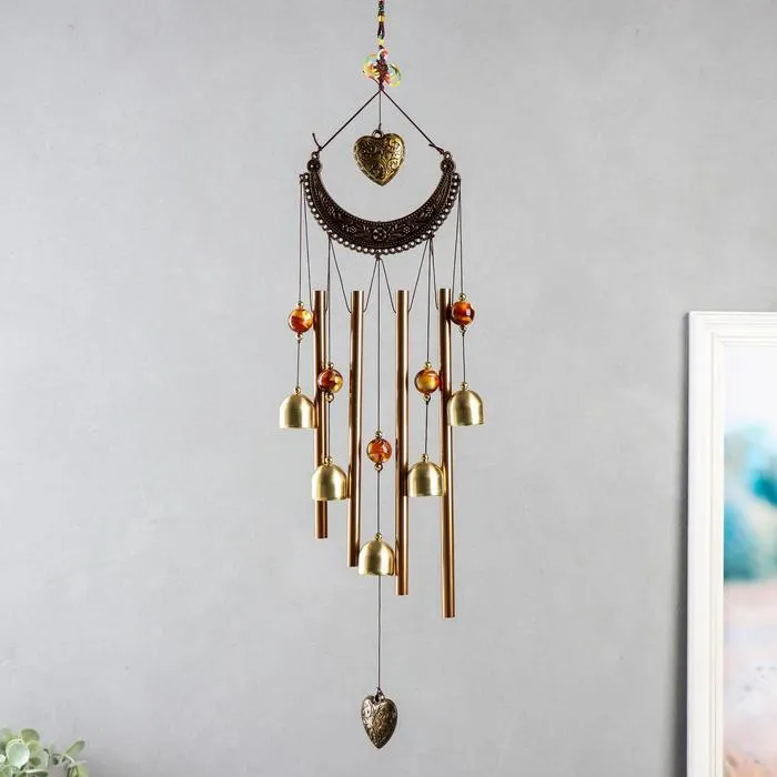 Музыка ветра «Ожерелье и сердце», металл, пластик, 4 трубки, 5 колокольчиков, 54 см — Характеристики