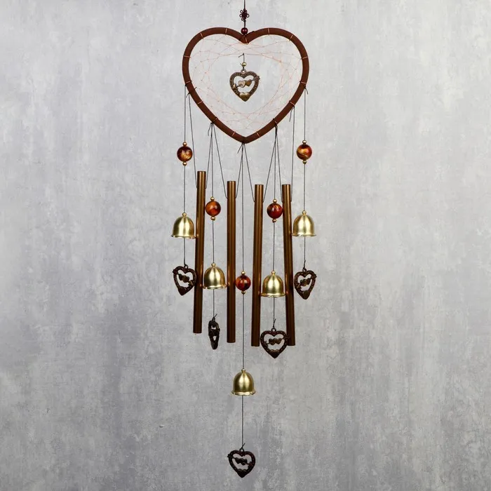 Музыка ветра «Сердце с сердечками», металл, 4 трубки, 5 колокольчиков, d=17 см, длина 65 см — Характеристики