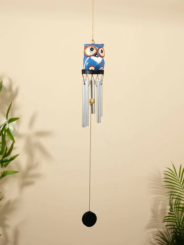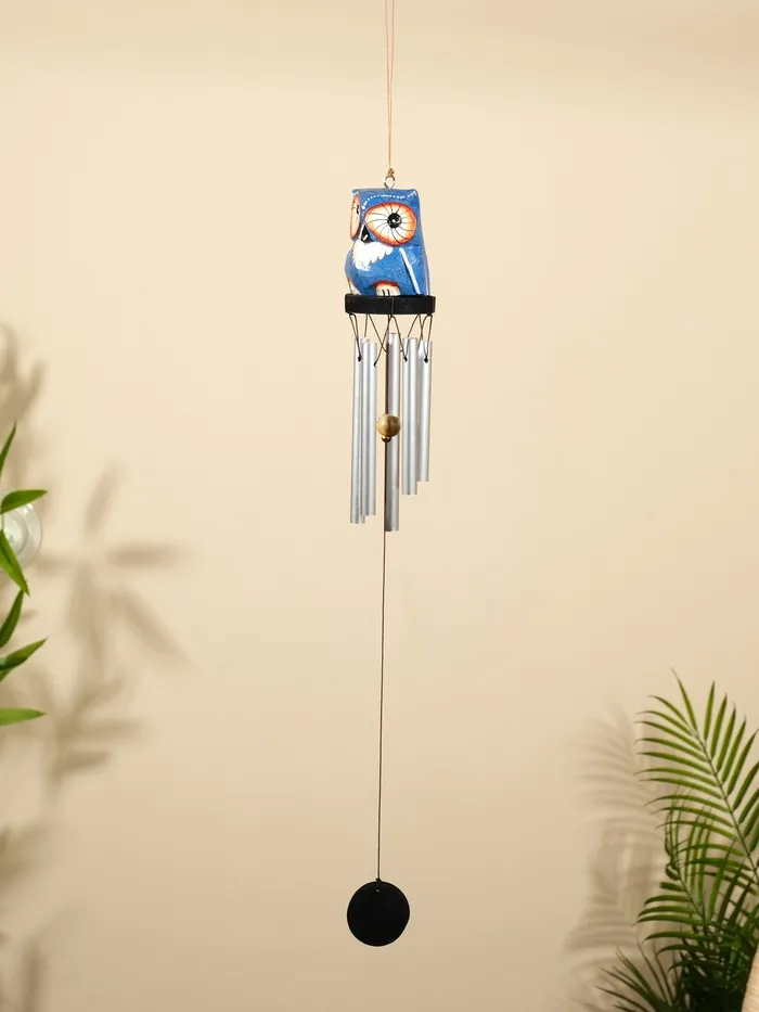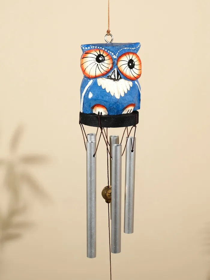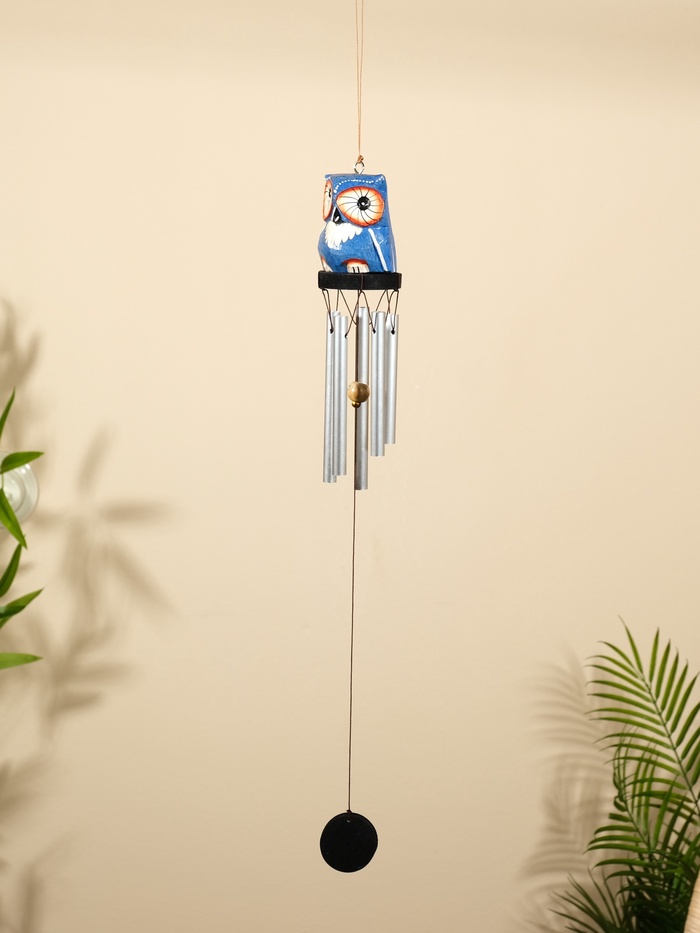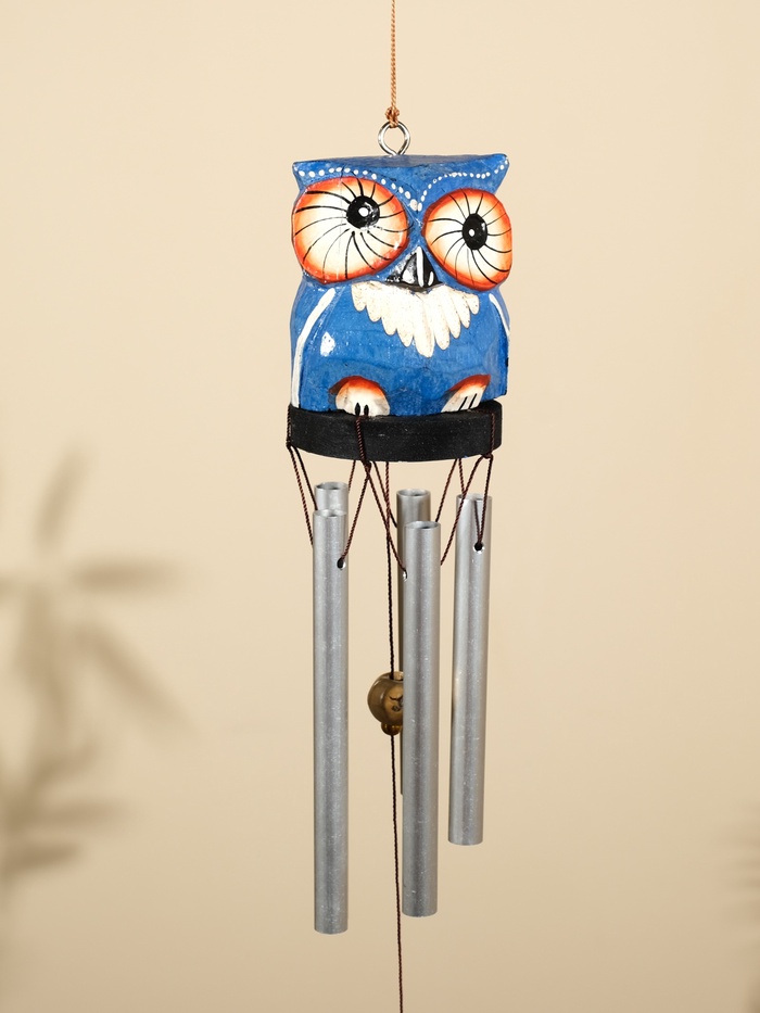 Музыка ветра "Совёнок" дерево, алюминий, 7х6х60 см, цв. синий