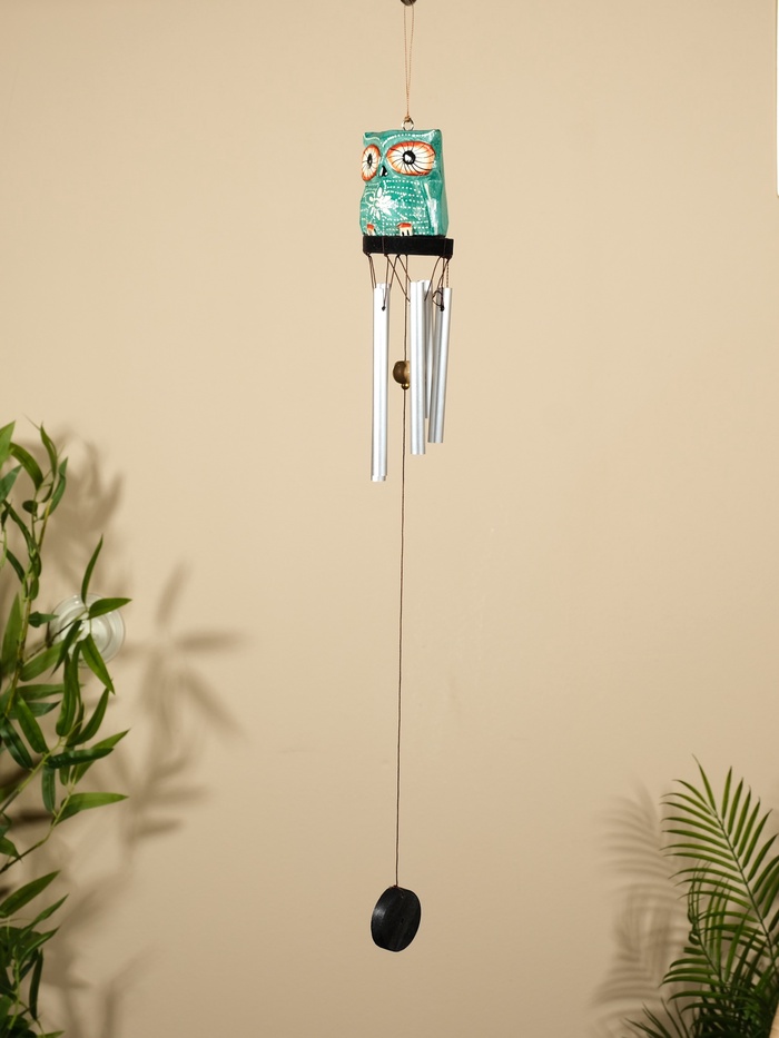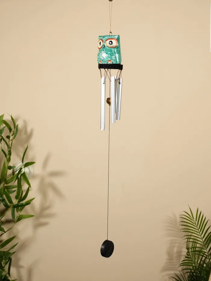 Музыка ветра "Совёнок" дерево, алюминий, 7х6х60 см, цв. зелёный