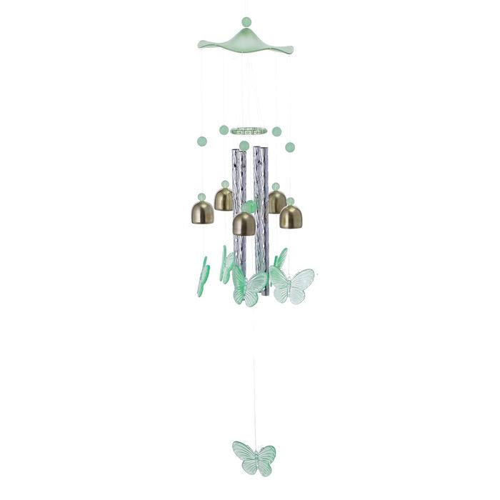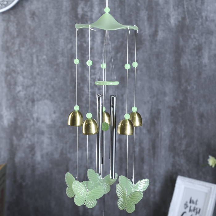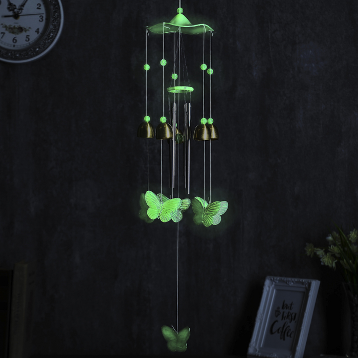 Музыка ветра светящаяся «Бабочки», фосфорная, пластик, металл, 4 трубки, 5 колокольчиков, 60 см — Характеристики