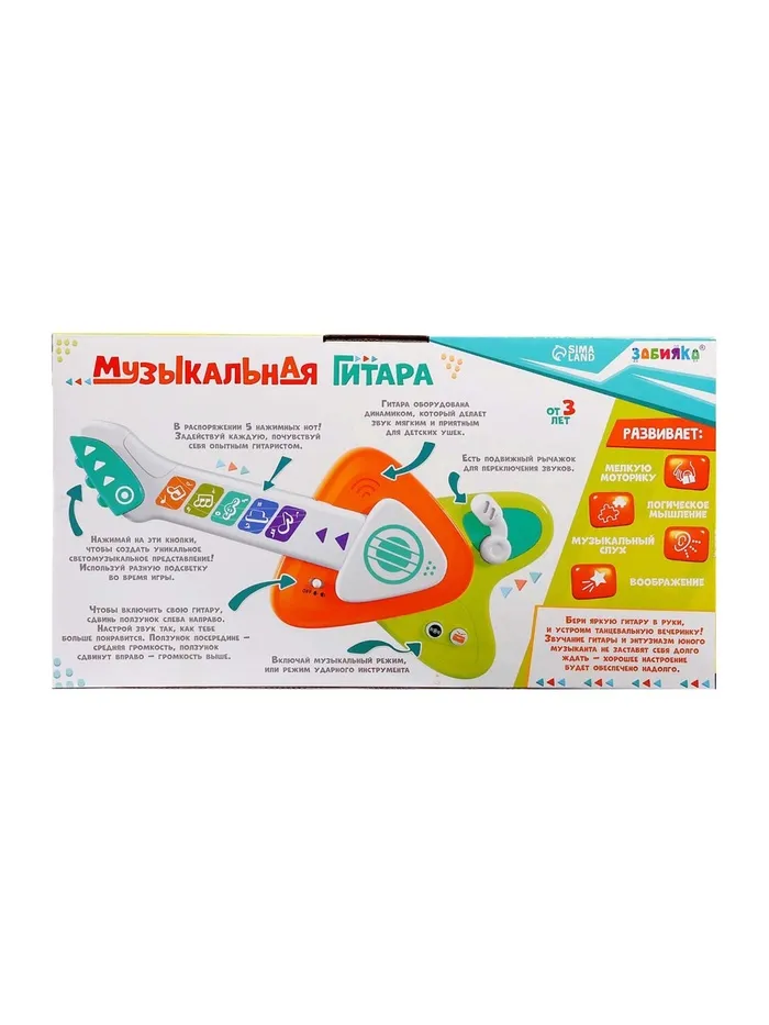 Сенсорная гитара помогает тренировать координацию движений, музыкальный слух и чувство ритма. Яркий дизайн и простота управления делают игрушку отличным подарком для малышей от 3 лет.