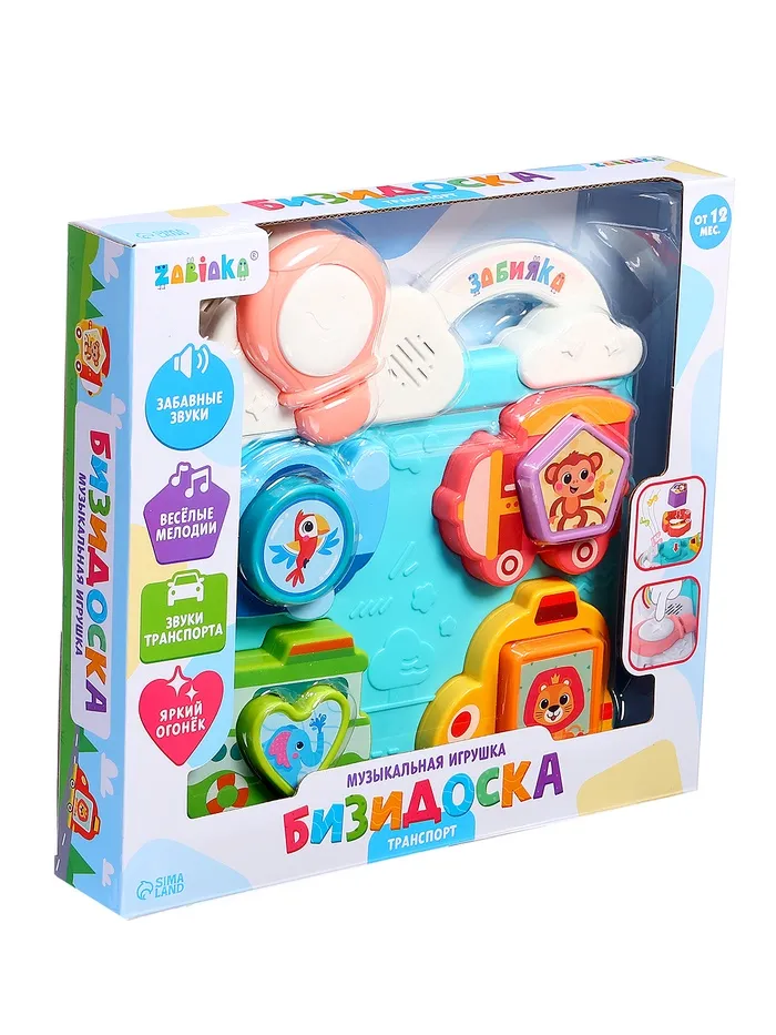 Музыкальная игрушка «Бизидоска. Транспорт» станет прекрасным подарком для малыша, который начинает исследовать мир звуков, цветов и форм. Этот яркий сортер с музыкальными и световыми эффектами идеально подходит для самых маленьких исследователей.