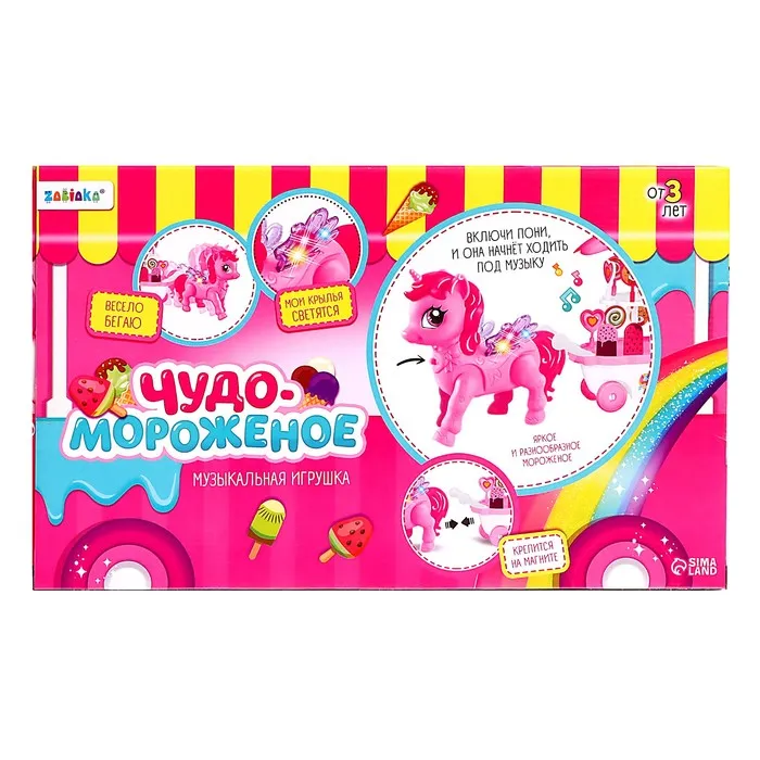 Музыкальная игрушка «Чудо мороженое: Единорог» ходит, звук, свет, с аксессуарами — Характеристики