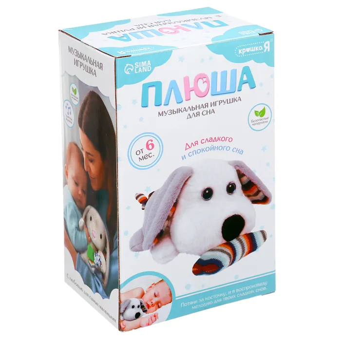 Мягкая музыкальная игрушка «Плюша: Собачка» станет идеальным спутником для комфортного сна малыша. Игрушка разработана специально для детей от 6 месяцев, сочетая в себе мягкий текстильный материал и звуковые эффекты, которые помогут успокоить ребёнка и создать уютную атмосферу.