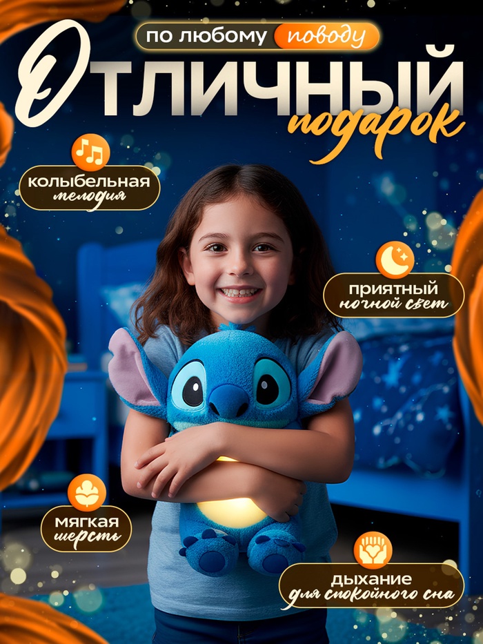 Игрушка «Стич» — это уютный друг для сна, который помогает ребёнку расслабиться, успокоиться и мягко погрузиться в ночной отдых. Мягкий плюш, тёплый свет и плавное “дыхание” создают атмосферу безопасности, а четыре режима работы позволяют подобрать комфортный вариант для любого возраста. «Стич» может использоваться как ночник, так и мягкая игрушка, оставаясь рядом с ребёнком всю ночь.