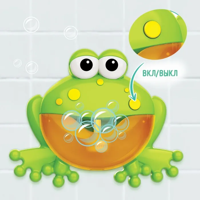 - Закрепите игрушку на стене ванны на присоски и нажмите на кнопку включения. Игрушка начнёт проигрывать весёлые песенки и генерировать большое количество мыльной пены.