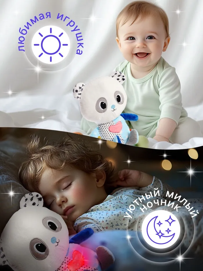 Музыкальная игрушка для сна «Панда» станет верным помощником для малышей и их родителей в момент засыпания. Мягкий и уютный друг сочетает в себе звуковые и световые эффекты, создавая спокойную атмосферу для лёгкого и крепкого сна.