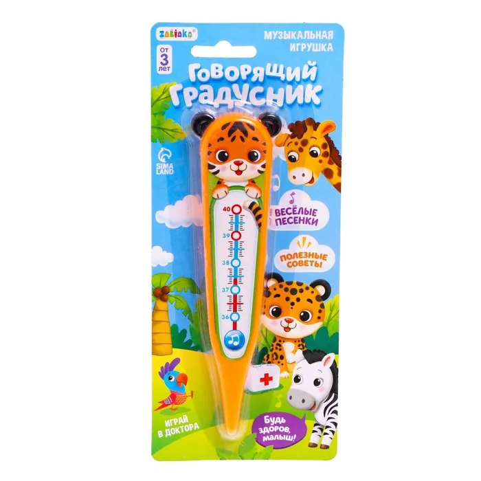 Музыкальная игрушка «Говорящий градусник» способствует развитию у ребёнка логического мышления, слухового восприятия и воображения.