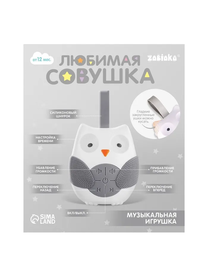 Музыкальная игрушка «Любимая совушка» привлечёт внимание трогательным дизайном и надолго займёт малыша благодаря множеству полезных функций. Игрушка не только развлечёт ребёнка — с ней можно осваивать новые навыки!