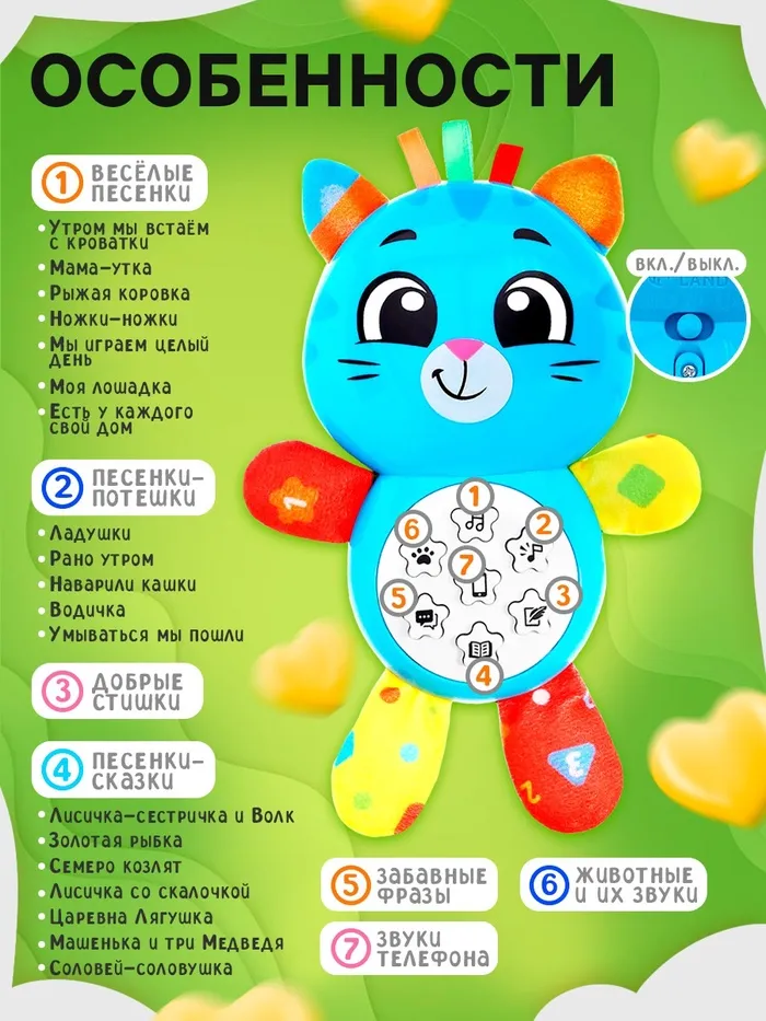 Музыкальная игрушка «Любимый друг. Котик», песни, стихи, фразы — Характеристики