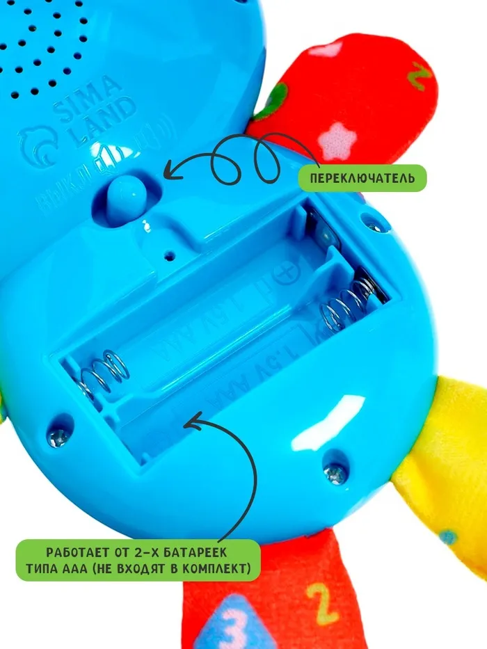 - Игрушка выполнена из текстиля и пластика без острых деталей, приятна на ощупь и подходит для малышей.