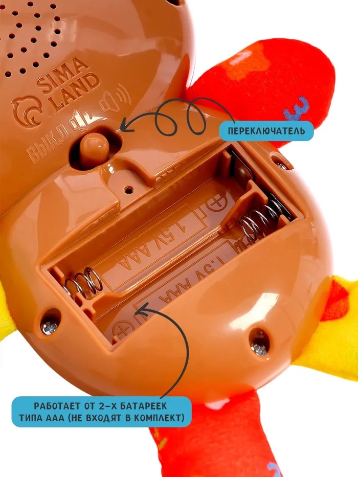 - Игрушка выполнена из текстиля и пластика без острых деталей, приятна на ощупь и подходит для малышей.