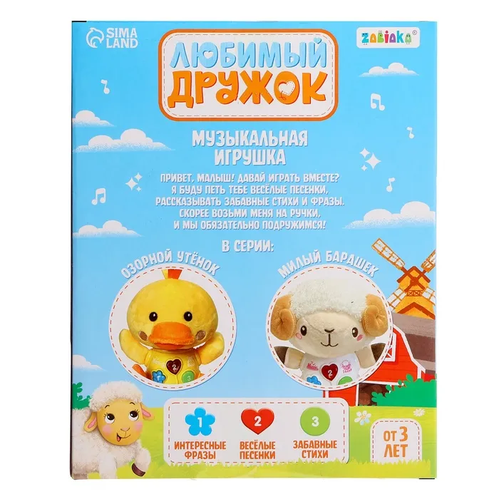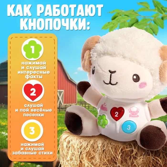Музыкальная игрушка «Любимый дружок: Барашек», звук, свет — Характеристики
