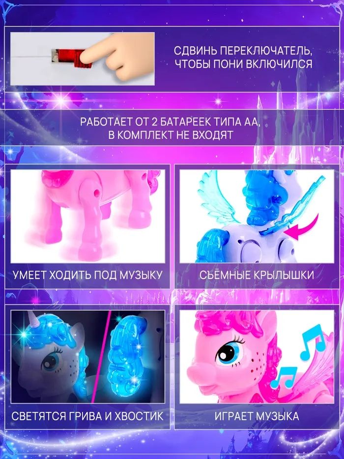 Музыкальная игрушка «Любимый единорог» ходит, звук, цвет МИКС — Характеристики