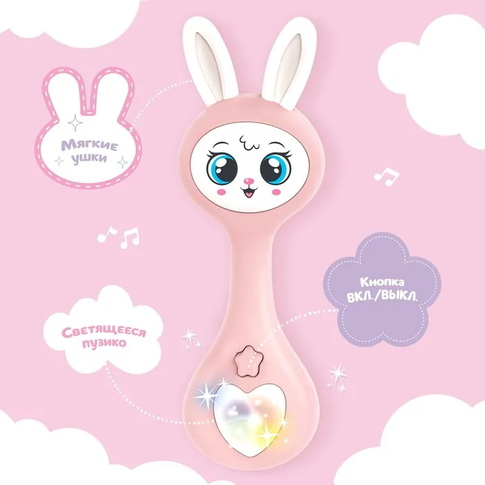 Музыкальная игрушка «Любимый зайчик», звук, свет, цвет розовый — Характеристики