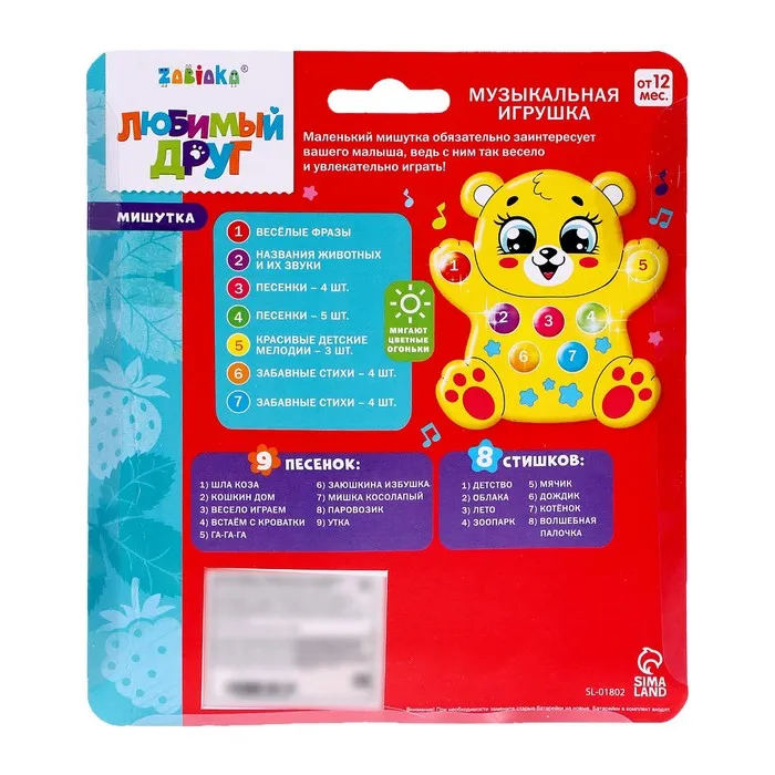 Музыкальная игрушка «Медвежонок», световые и звуковые эффекты — Характеристики