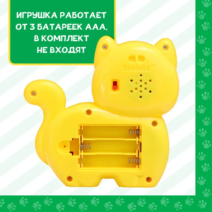 - Кнопка включения находится на обратной стороне игрушки, рядом с динамиком и батарейным отсеком.