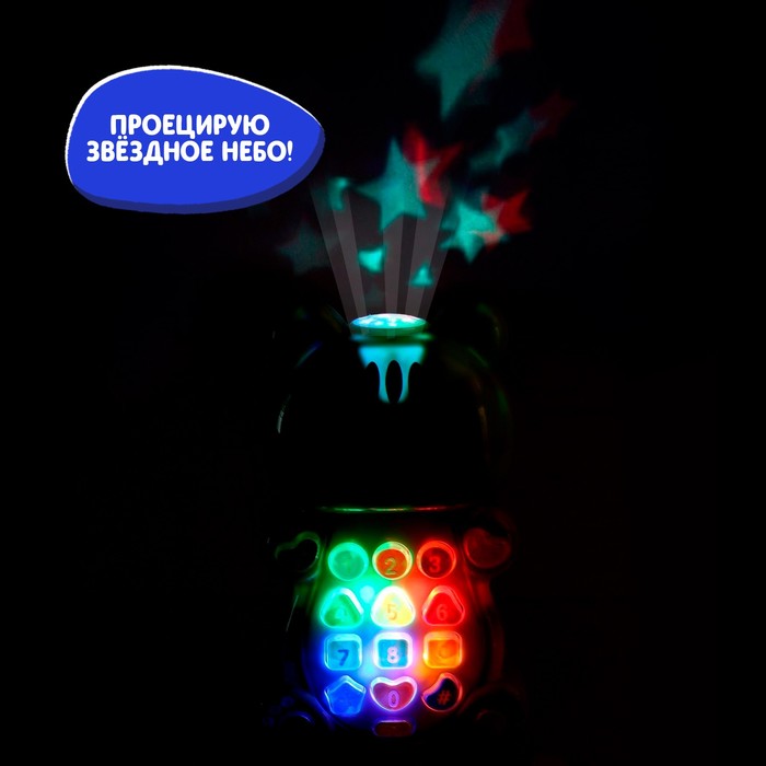 Когда малютка устанет, игрушка споёт ему колыбельную и как ночник будет излучать свет, чтобы ему было не страшно засыпать.