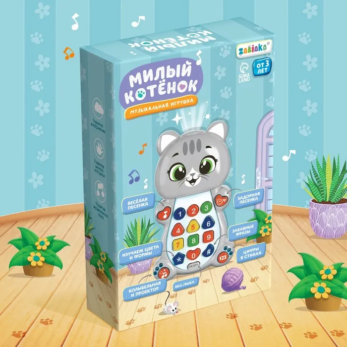 Музыкальная игрушка «Милый котёнок» — это музыкальная игрушка со световым проектором, которая сочетает в себе увлекательное обучение и настоящее веселье.