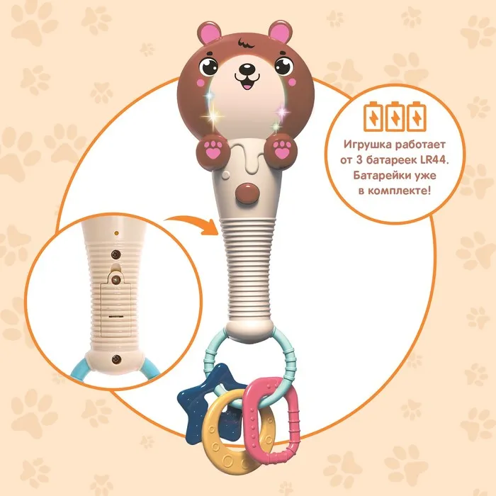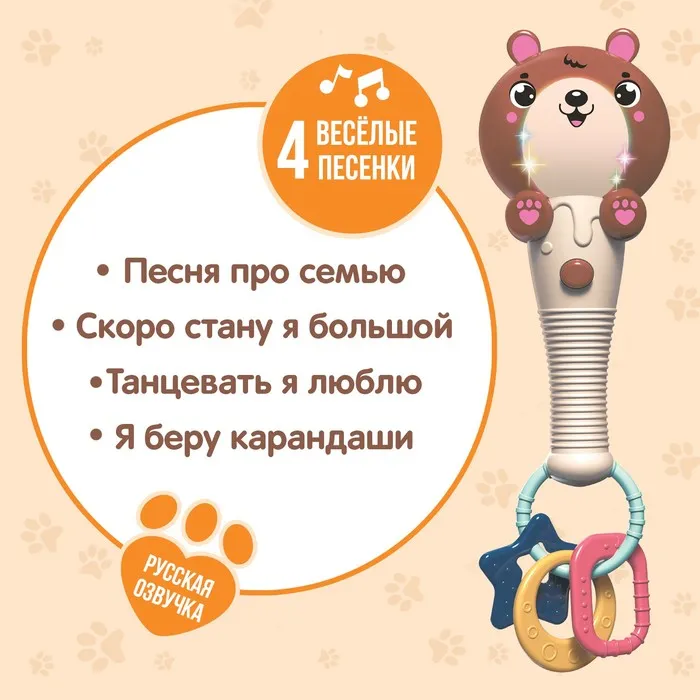 Музыкальная игрушка «Милый мишка», звук, свет, цвет оранжево-коричневый — Характеристики