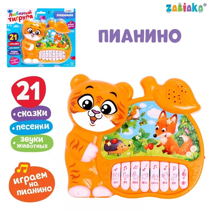 Музыкальная игрушка-пианино «Любимый тигруля», ионика, 4 режима игры, работает от батареек — Характеристики
