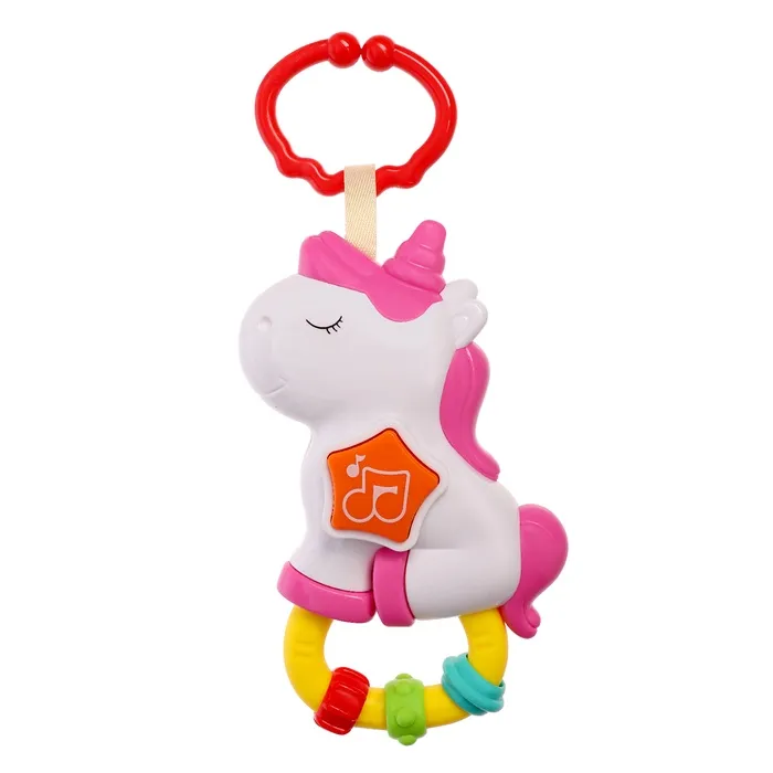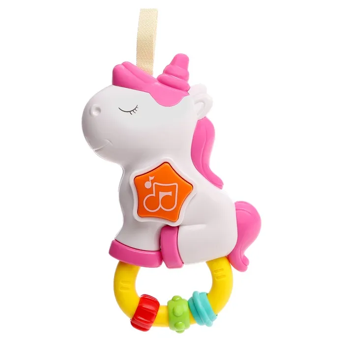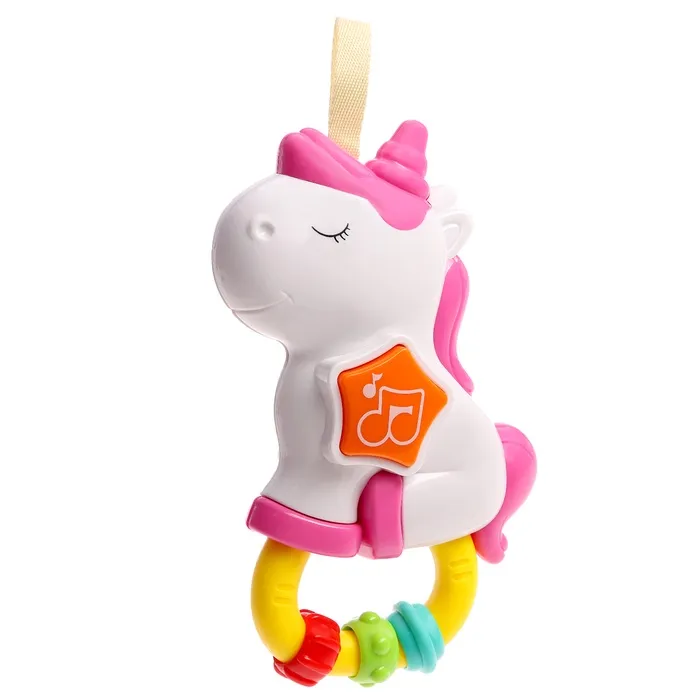 Музыкальная игрушка - подвеска «Любимый единорог», прорезыватель - погремушка, звук, свет, цвет розовый — Характеристики