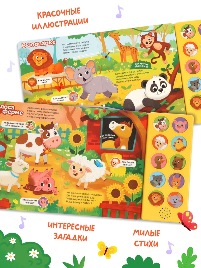 Музыкальная книга «Кто как говорит», 10 звуков — Характеристики