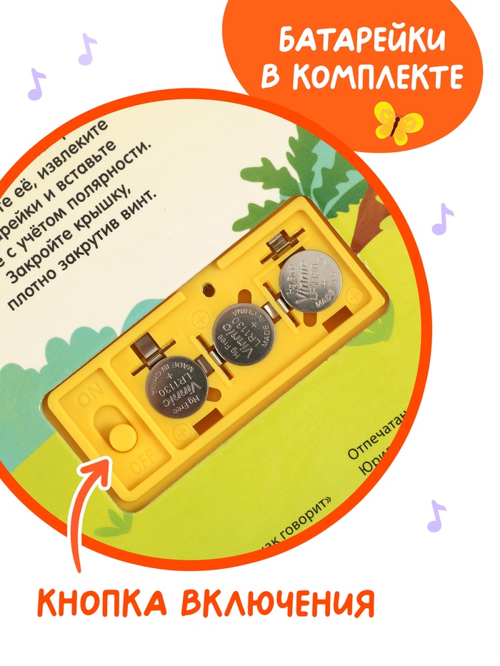 - Прочность на годы. Картон не рвётся, звуковой модуль не боится падений, батарейки скрыты от любопытных пальцев.
