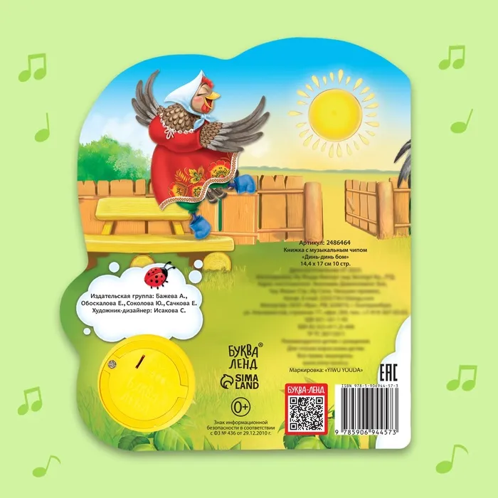 В книгу встроен музыкальный чип. Если нажать на кнопку, зазвучит приятная мелодия.