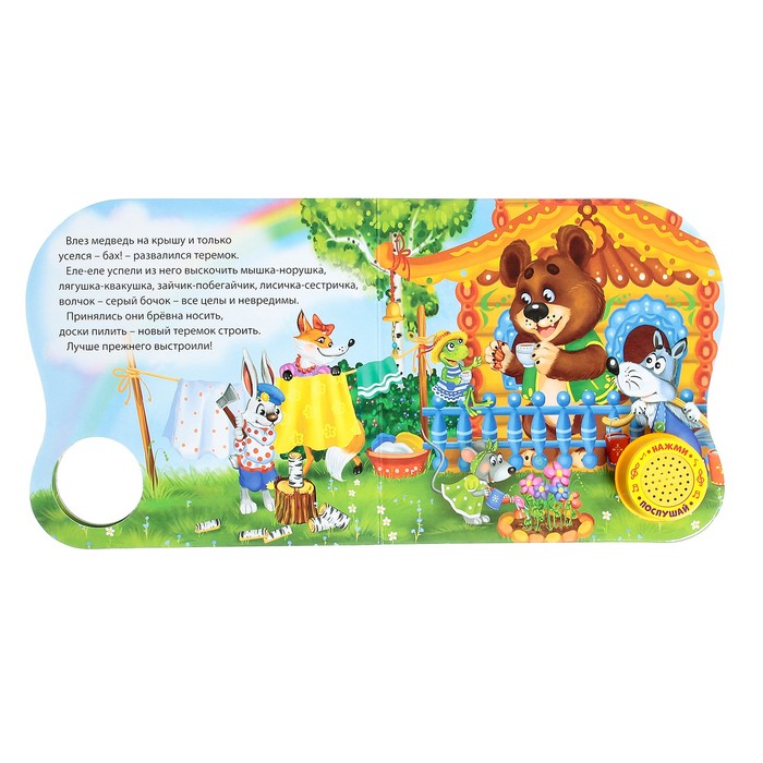 С музыкальной книгой «Русская народная сказка» малыш познакомится с народным творчеством. На страничках издания вы найдёте знакомую сказку «Теремок», а ещё послушаете весёлую песенку.