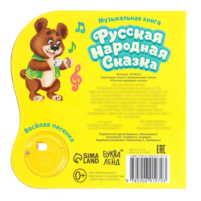 С музыкальной книгой «Русская народная сказка» малыш познакомится с народным творчеством. На страничках издания вы найдёте знакомую сказку «Теремок», а ещё послушаете весёлую песенку.