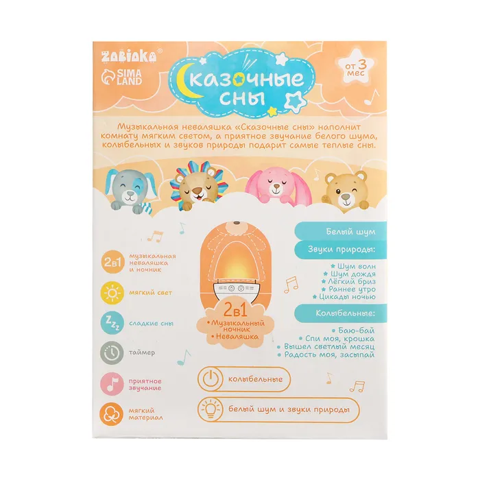 Музыкальная неваляшка-ночник «Сказочные сны» — идеальный выбор для родителей, стремящихся создать для своего ребёнка атмосферу спокойствия и комфорта во время сна. Эта игрушка не только поможет вашему малышу быстрее заснуть, но и обеспечит безопасность и уют благодаря качественным материалам и продуманному дизайну.